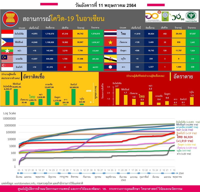 - ไทยมียอดผู้ติดเชื้อสะสมอยู่ที่อันดับ 99 และยอดผู้เสียชีวิตอยู่ที่อันดับ 120 ของโลก